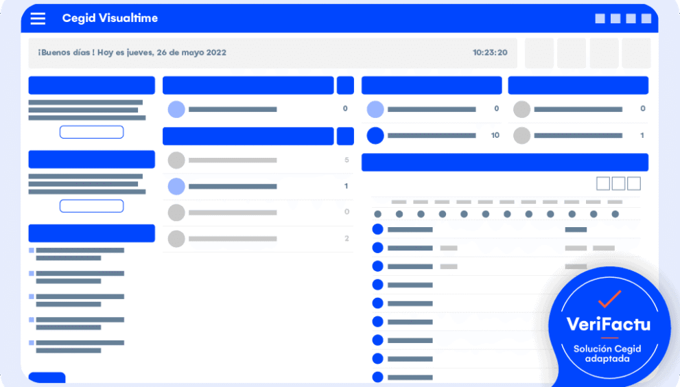 Una de las principales ventajas de Cegid Visualtime es su capacidad para registrar de forma exacta las horas trabajadas. Su sistema permite controlar entradas, salidas, incidencias y horas extra sin necesidad de procesos manuales. Todo se centraliza en un panel claro y fácil de utilizar, accesible desde distintos dispositivos.