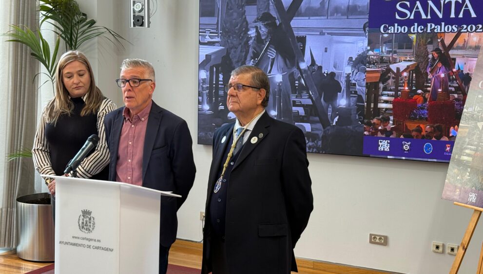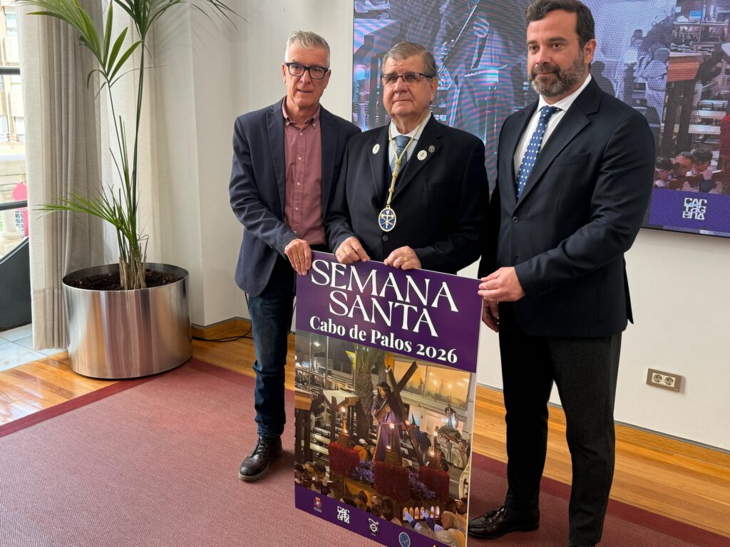 La Semana Santa de Cabo de Palos 2026 ya cuenta con cartel oficial y calendario de actividades. Ambos se han presentado este viernes 6 de marzo en un acto en el que ha participado la concejal de Turismo del Ayuntamiento de Cartagena, Beatriz Sánchez, junto al Hermano Mayor de la Cofradía del Santísimo Cristo de los Pescadores, Pedro Solano, y su Primer Mayordomo, Francisco García.