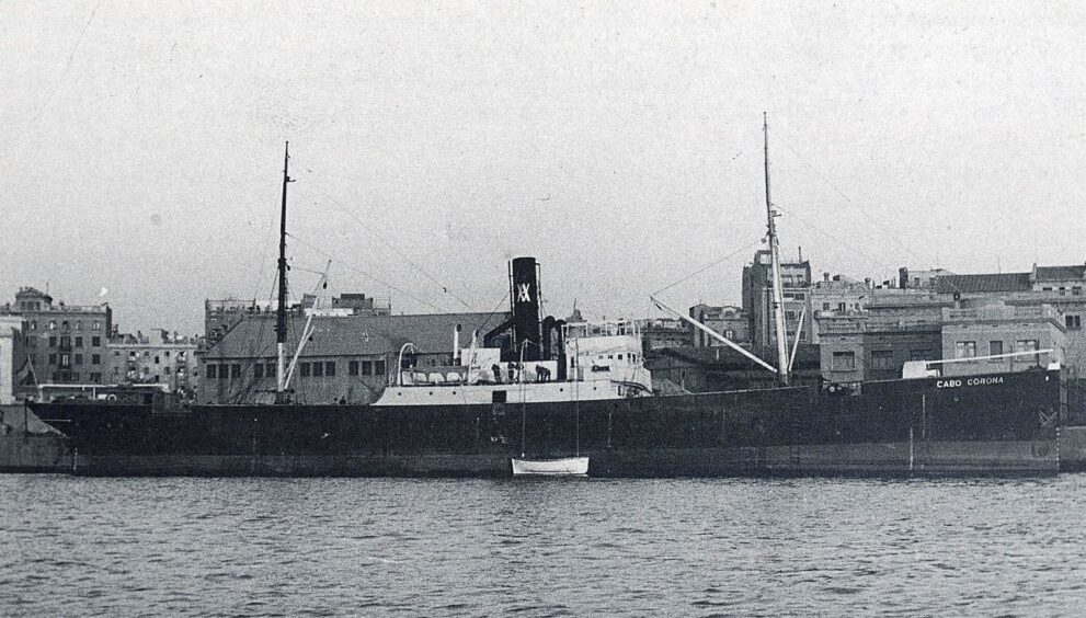 “Se reciben noticias que a unas 30 millas al SO de Cabo Palos sufrió averías en el timón el mercante español ‘Cabo Corona’, quedando dicho buque sin gobierno y demandando auxilio. Más tarde se supo que habían acudido en su socorro una corbeta inglesa y de este puerto salió el remolcador de la Marina de Guerra española ‘R-14’. El ‘Cabo Corona’ será remolcado a este puerto, donde se espera llegue de madrugada.