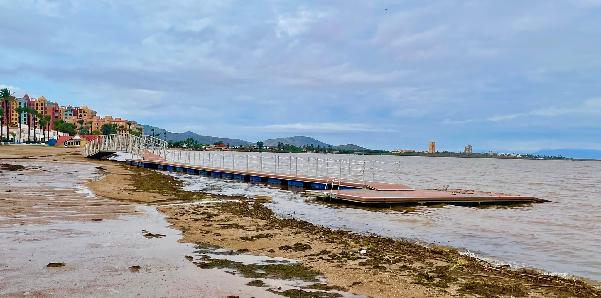 El fuerte episodio de lluvias y viento registrado en las últimas horas ha provocado importantes daños en el litoral del Mar Menor, especialmente en Mar de Cristal, Playa Honda y Los Nietos.