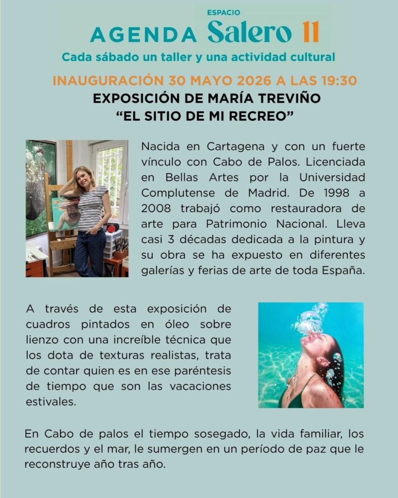 Con esta programación, Espacio Salero 11 refuerza su apuesta por dinamizar la vida cultural en el litoral cartagenero, ofreciendo propuestas variadas que combinan literatura, arte y reflexión en un entorno único.