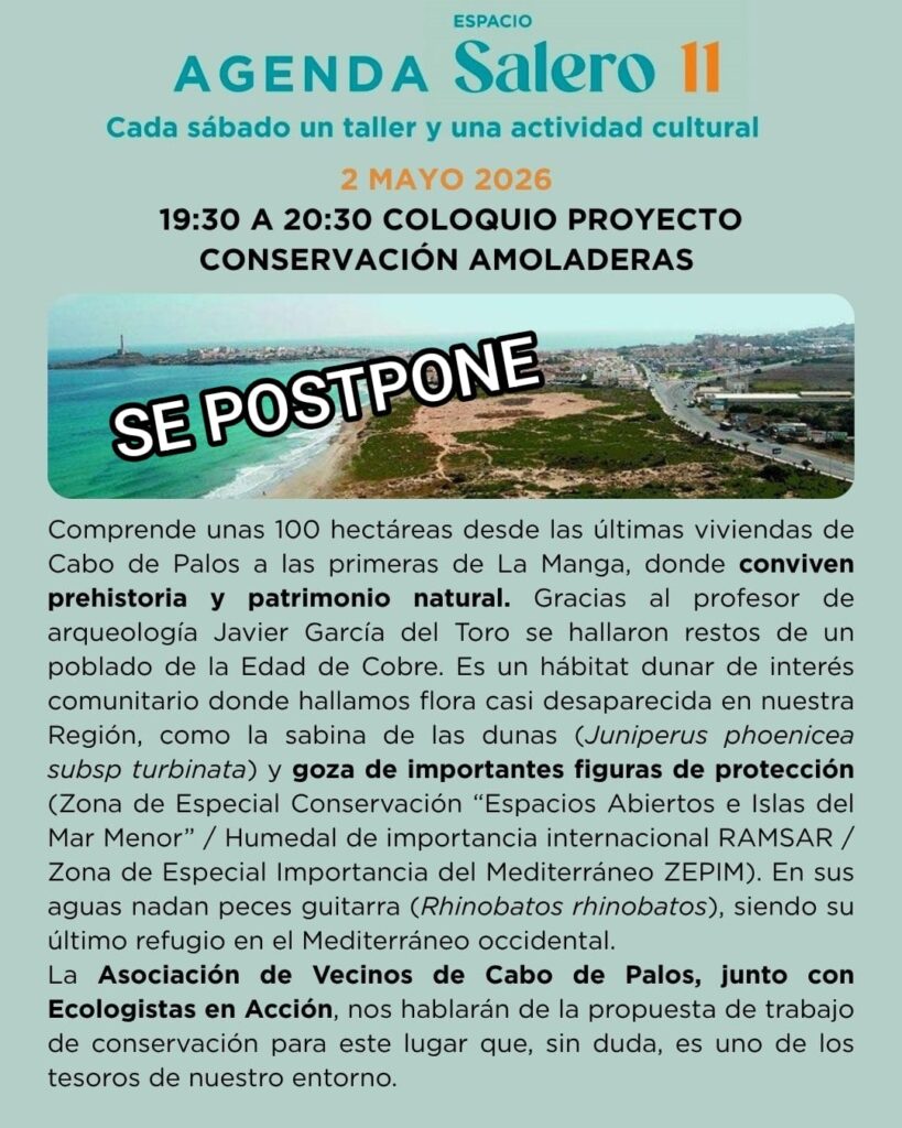 Aunque inicialmente estaba previsto arrancar el 2 de mayo con un coloquio centrado en la protección y conservación de Amoladeras, considerado uno de los grandes tesoros naturales y culturales de la zona, la actividad ha sido aplazada por motivos de agenda de los participantes. Desde la organización aseguran que se anunciará una nueva fecha próximamente.