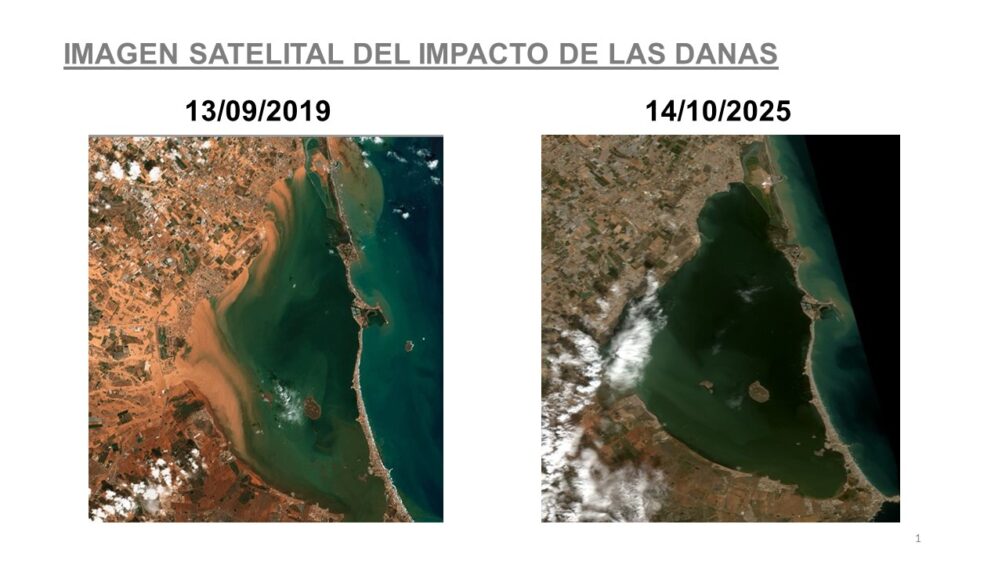 “Tenemos por primera vez las imágenes de satélite del Mar Menor después de las lluvias y en ellas se aprecia claramente cómo las entradas de agua dulce se concentran en puntos muy concretos y con una extensión mucho menor que la registrada en 2019. Esa diferencia visual refleja el efecto de las actuaciones ejecutadas en los últimos años por el Gobierno regional y la mejora en la respuesta del sistema”, explicaron fuentes del Ejecutivo autonómico.