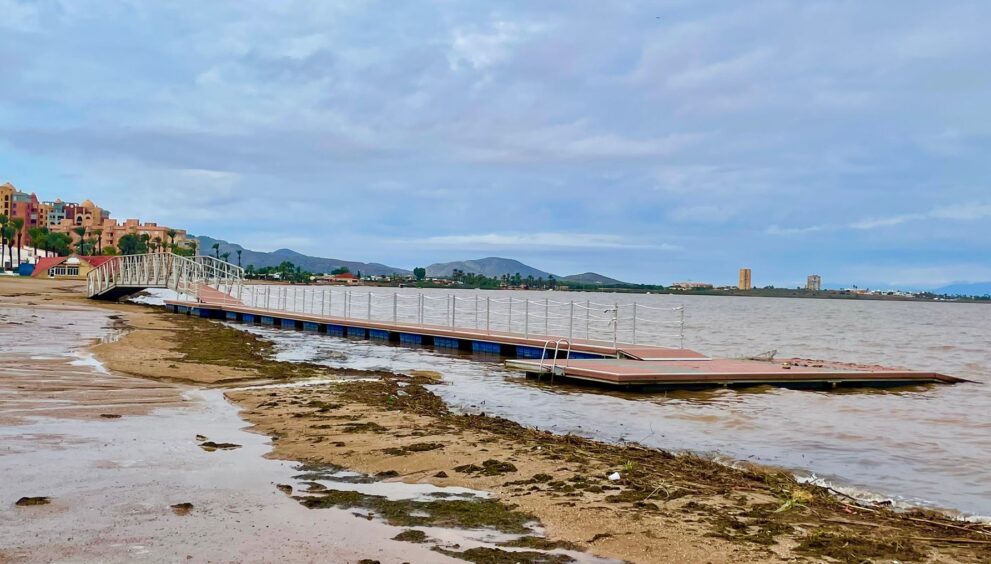 Como consecuencia, varias de sus sujeciones se han desplazado, dejando la estructura practicamente a la deriva con la suerte de que ha acabado en los primeros metros de playa.