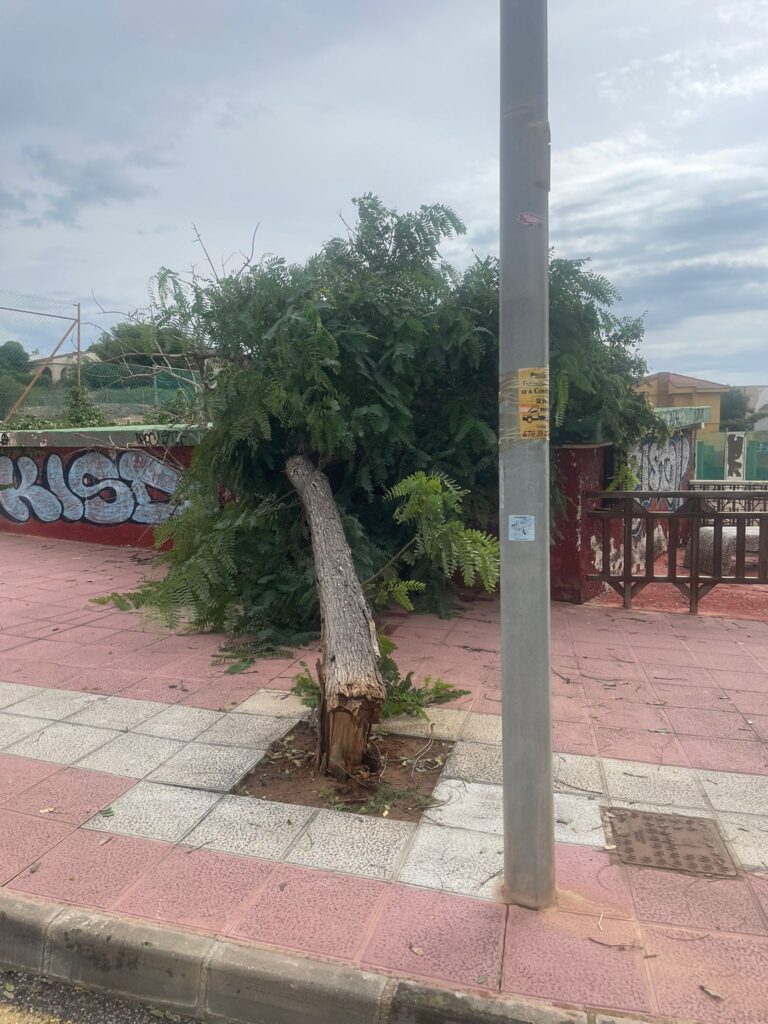 También se han registrado daños en Cala Reona y Cala Flores, donde se ha producido la caída de un árbol en Avenida las Calas y desprendimientos en los accesos a las playas, así como la caída de un poste eléctrico en calle Cala Reona.