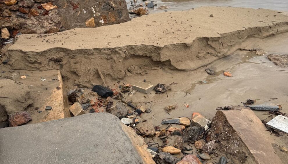 La playa de Levante ha sido la zona más castigada: los accesos han quedado con varios tramos impracticables y socavones formados por la fuerza del agua.