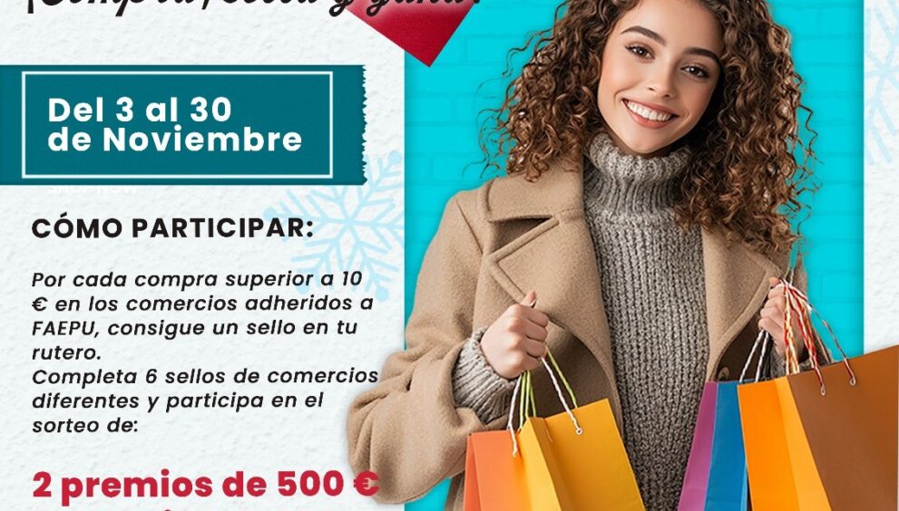 Del 3 al 30 de noviembre, por cada compra superior a 10 euros realizada en los comercios adheridos a FAEPU, los clientes recibirán un sello en su rutero. Una vez completados seis sellos de establecimientos diferentes, podrán participar en el sorteo de: