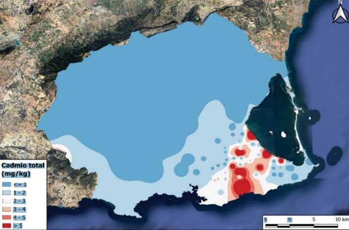 Denunciamos la inacción administrativa ante unos mapas oficiales de isoconcentraciones de plomo (Pb), cadmio (Cd), zinc (Zn) y cobre (Cu) que muestran patrones espaciales coherentes de contaminación en suelos agrícolas del Campo de Cartagena. No hablamos de conjeturas: hablamos de cartografía elaborada para la Administración, con zonas claramente identificadas como hotspots y gradientes compatibles con aportes históricos de origen minero-metalúrgico.
