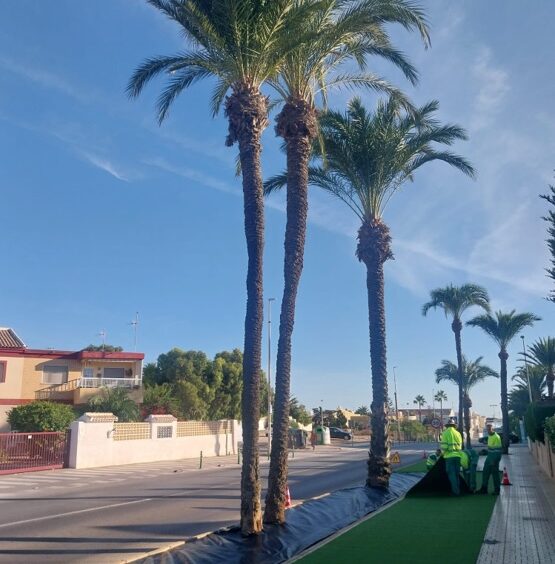 Las estrategias verdes impulsadas por la Unión Europea y la Agenda 2030 no consisten en «pintar de verde» los espacios urbanos, sino en aplicar soluciones basadas en la naturaleza. En este sentido, creemos que en Cabo de Palos hubiera sido más adecuado apostar por la ampliación de los alcorques existentes de las palmeras —plantadas hace apenas cuatro años y hoy ya en mal estado por falta de cuidados y espacio— y la creación de parterres longitudinales a lo largo de las aceras, combinados con árboles y arbustos que aporten sombra, humedad y biodiversidad.